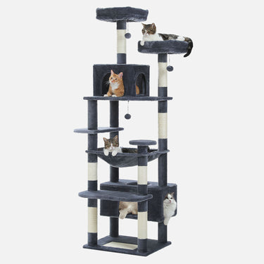 - Variatie: Onze krabpalen bevatten verschillende elementen zoals hangmatten, tunnels en speelballetjes om uw kat urenlang te vermaken.