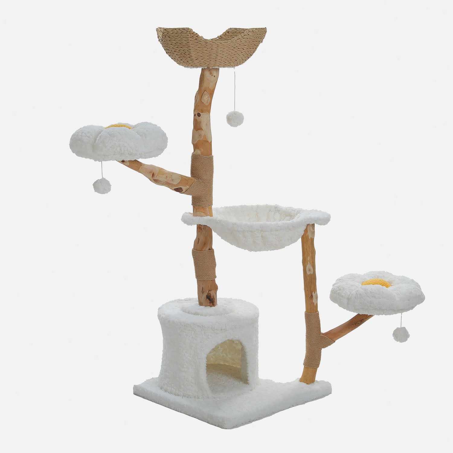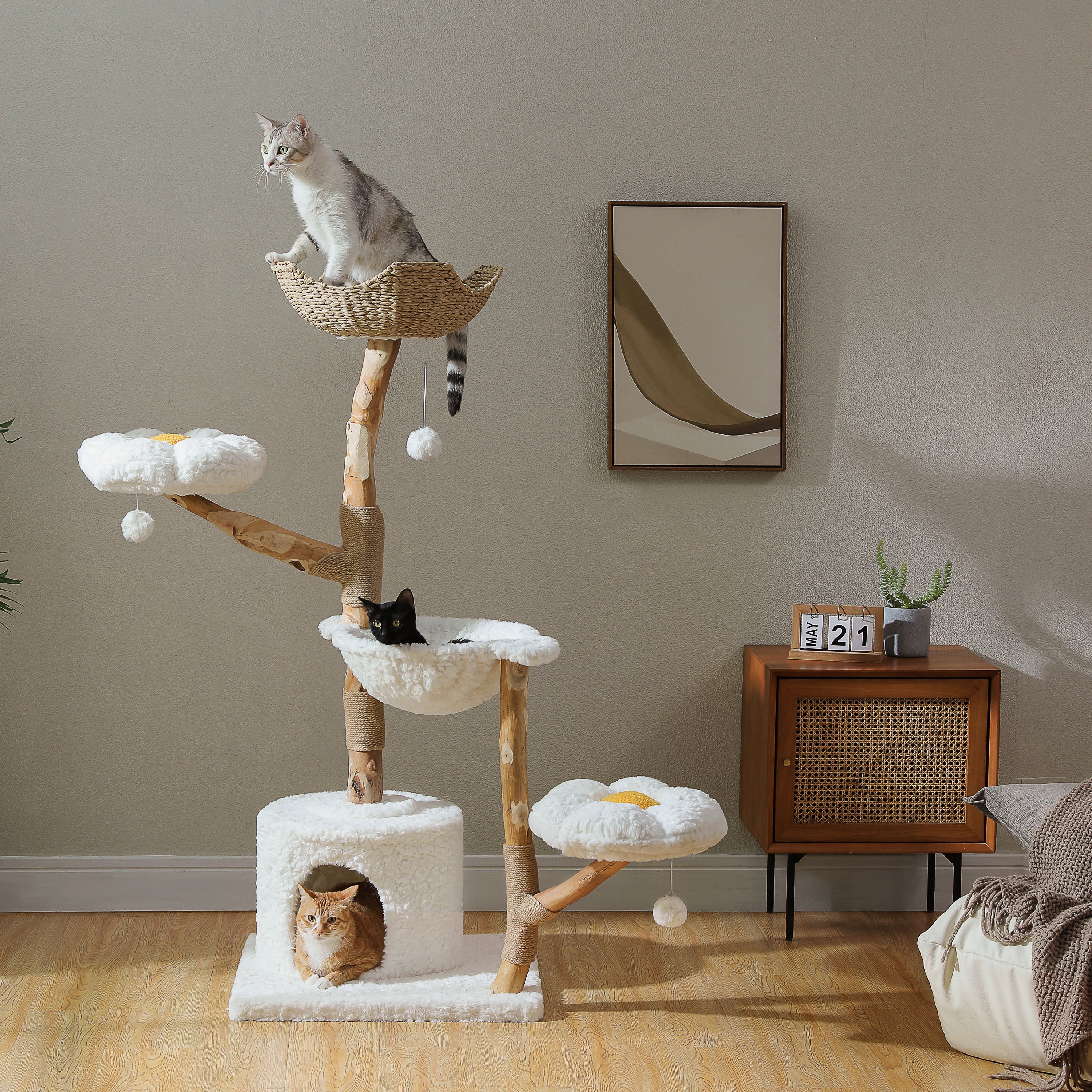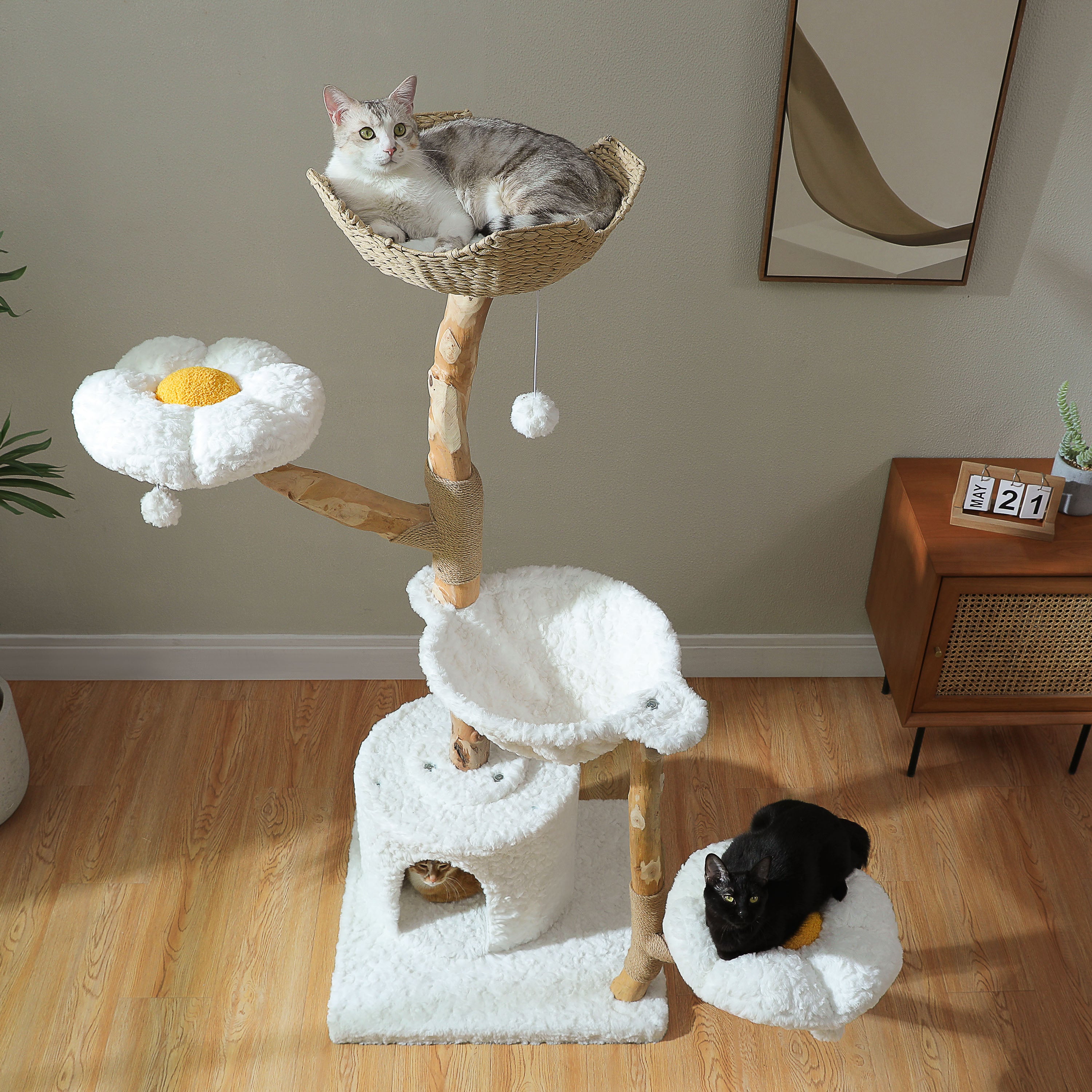 Die Kattenu PureWood Flower ist aus hochwertigem Massivholz und strapazierfähigem Sisal gefertigt und daher langlebig. Das weiche Futter des Korbes ist abnehmbar und waschbar, während der Rest des Holzkratzbaums leicht mit einem feuchten Tuch oder Staubsauger zu reinigen ist. Eine nachhaltige Wahl für Katzenliebhaber, die einen hölzernen Katzenkratzbaum mit langer Lebensdauer suchen.