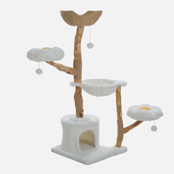 Die Kattenu PureWood Flower ist die perfekte Wahl für Katzen, die gerne klettern, spielen und ihre Nägel schärfen. Dieser hölzerne Kratzbaum für Katzen hat ein natürliches und stilvolles Design, das sich nahtlos in jede Inneneinrichtung einfügt. Mit einer Höhe von 92 cm und einer stabilen Konstruktion bietet dieser Kratzbaum aus Holz Ihrer Katze einen sicheren und bequemen Platz.