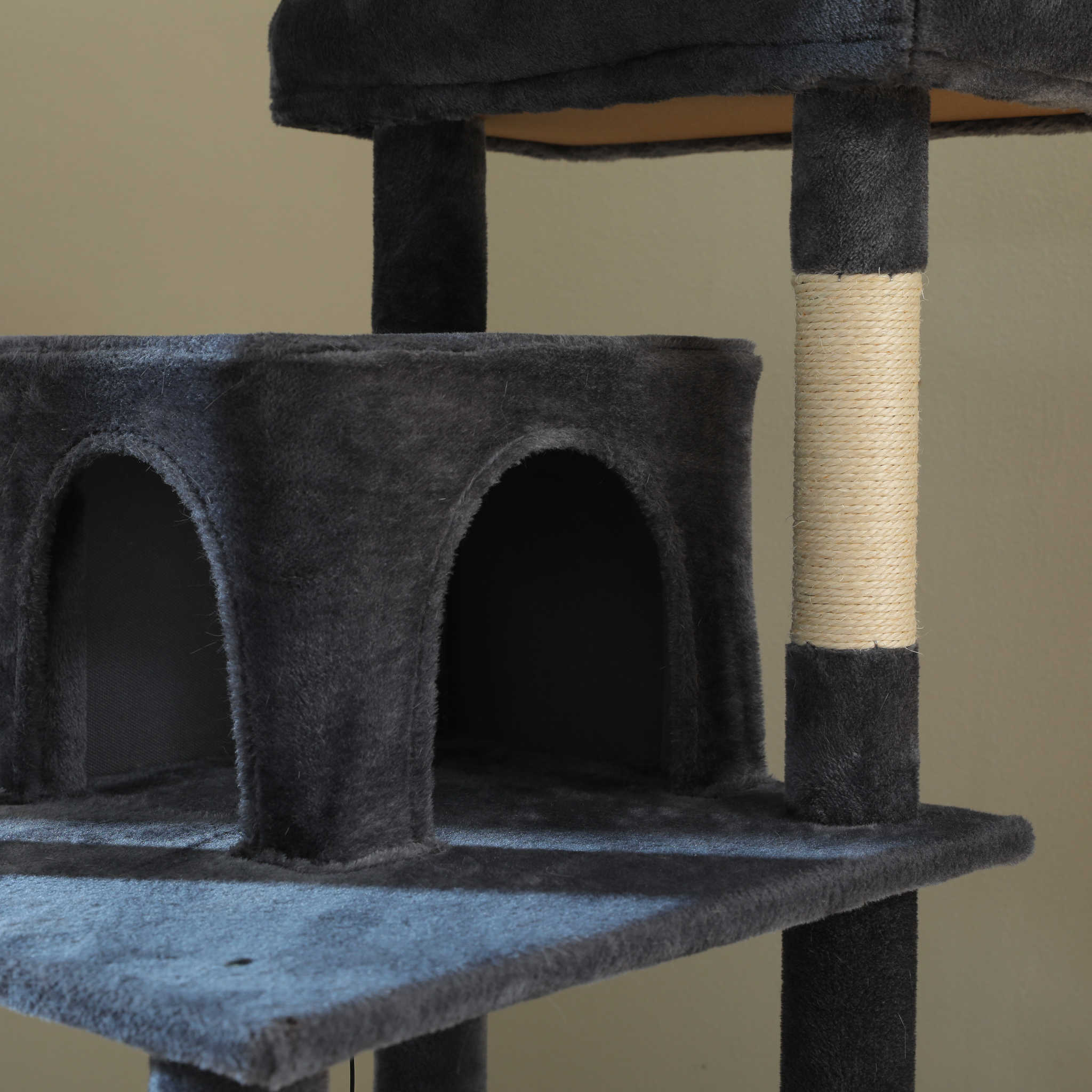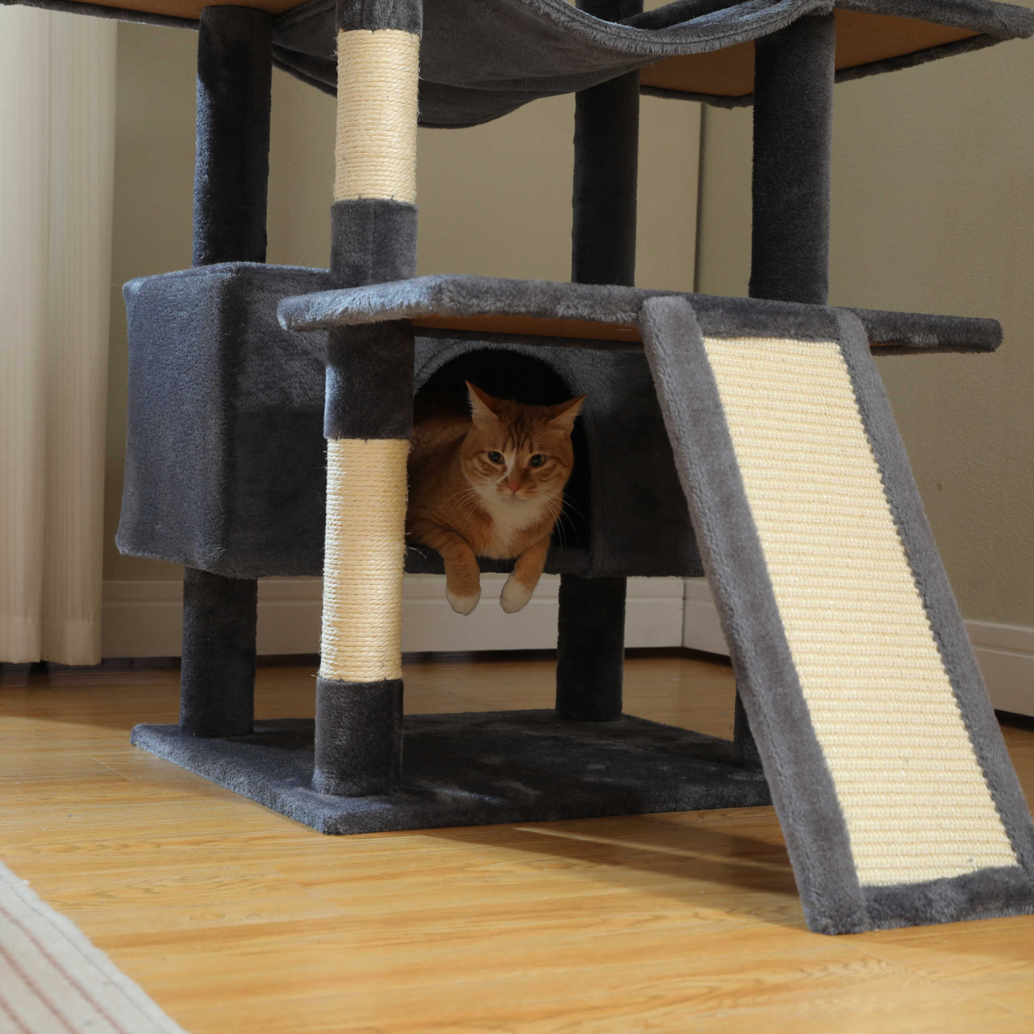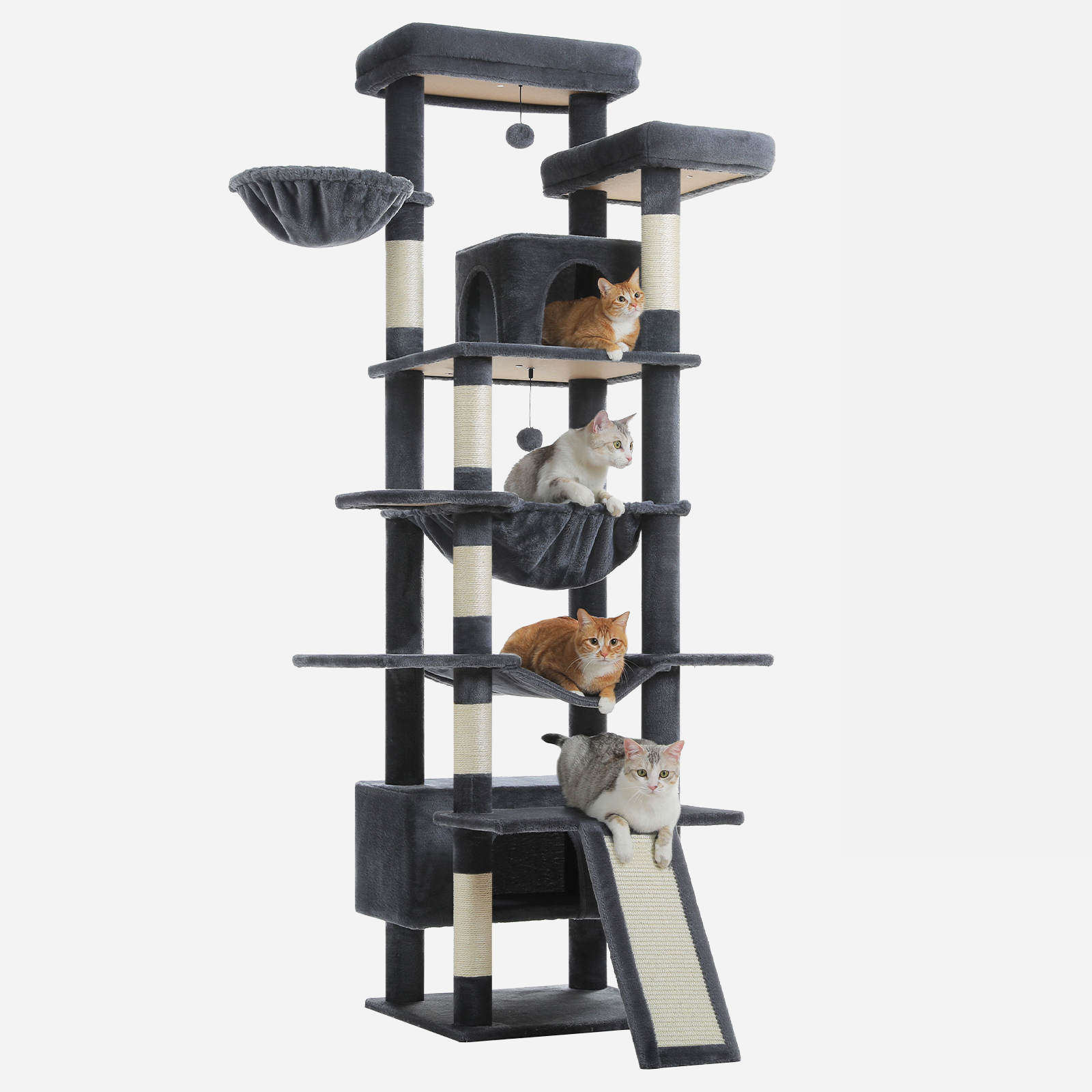 Dankzij de verzwaarde bodemplaat, versterkte sisal palen en slijtvast pluche is deze XXL krabpaal ontworpen voor intensief dagelijks gebruik. De solide constructie zorgt voor maximale stabiliteit, ook wanneer meerdere grote katten tegelijk spelen of klimmen.