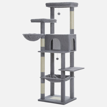 Met brede ligplekken, een beklede ladder en een comfortabel bovenbed is deze krabpaal perfect voor grote kattenrassen. De hoogte van 186 cm geeft jouw kat volop verticale bewegingsvrijheid zonder dat de paal te veel ruimte inneemt in huis.