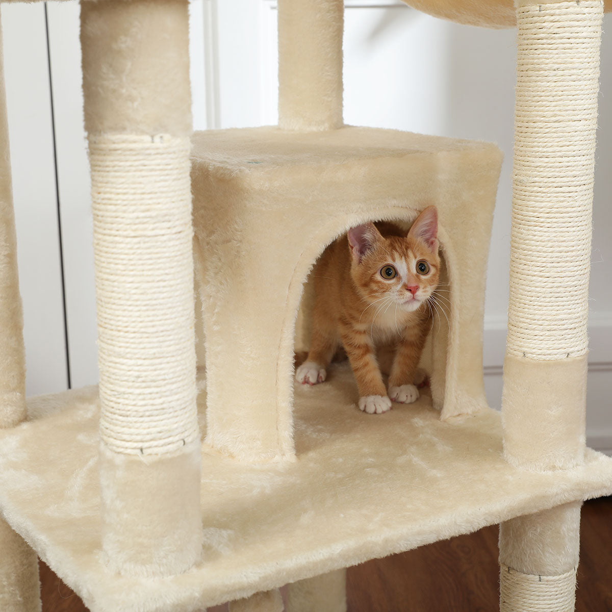 - Stijlvol Design:Het speelse ontwerp in een rustgevende beige tint is niet alleen aantrekkelijk voor je kat, maar voegt ook een vleugje verfijning toe aan je interieur. Het unieke uiterlijk van deze krabpaal maakt het een echte blikvanger.