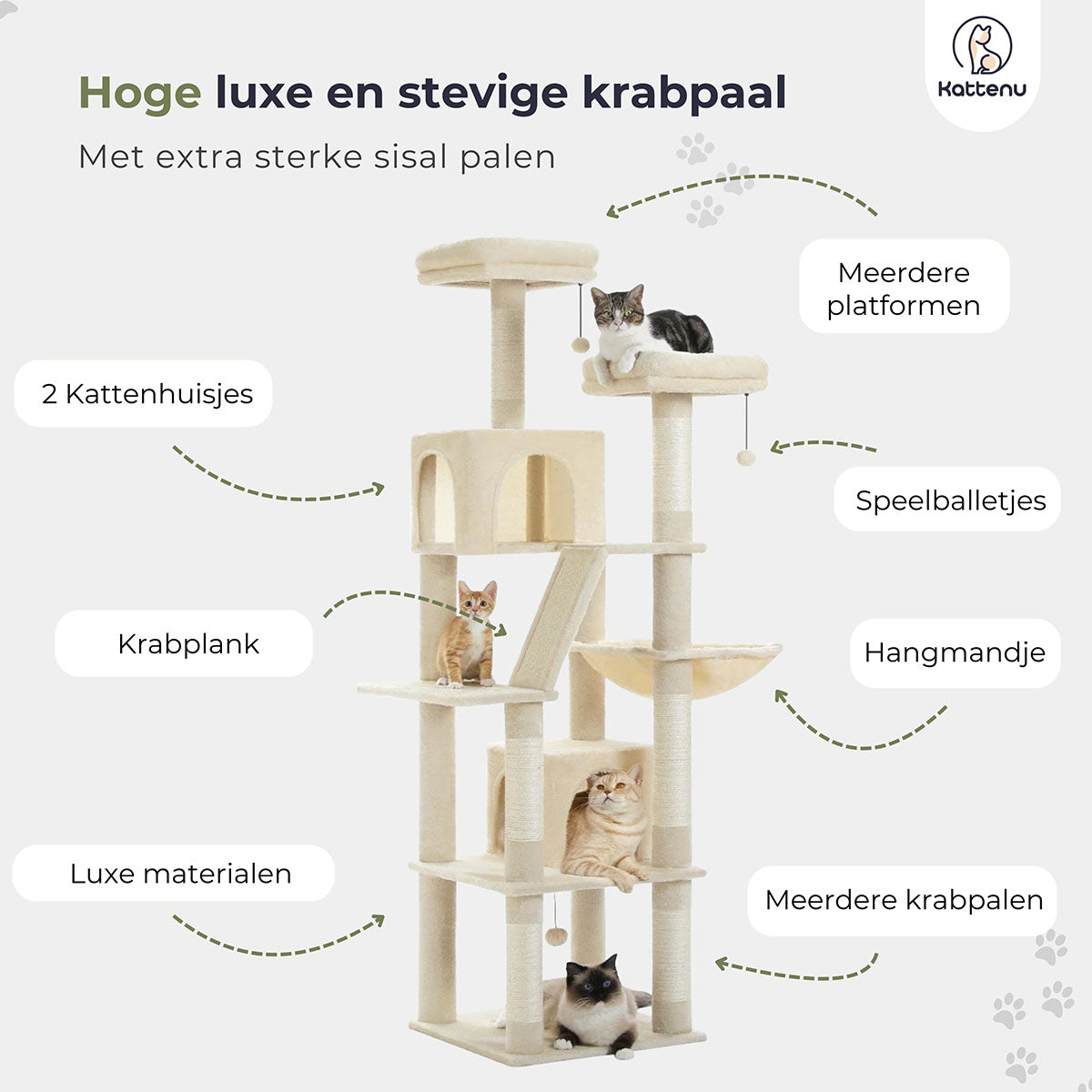 Ben je op zoek naar een krabpaal die niet alleen praktisch is, maar ook een elegante toevoeging vormt aan je interieur? Ontdek de beige CatCastle Krabpaal van Kattenu, een complete oplossing die jouw kat voorziet van zowel plezier als ontspanning. Met een indrukwekkende hoogte van 180 cm biedt deze krabpaal talloze mogelijkheden voor je kat om zich uit te leven, te relaxen en zijn nagels op een gezonde manier te onderhouden.